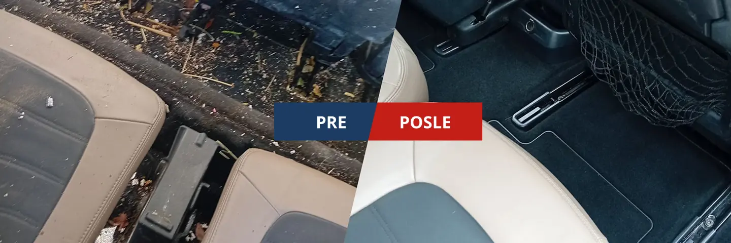 - Skidanje nečistoća/prljavštine, mrlja i masnoća i uklanjanje neprijatnih mirisa pomoću specijalizovanih preparate, kao i čišćenje i dezinfekcija svih skrivenih uglova i teško dostupnih mesta uz tretman kožnih sedišta i ostalih kožnih površina radi zaštite i očuvanja dugovečnosti